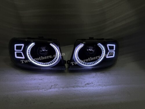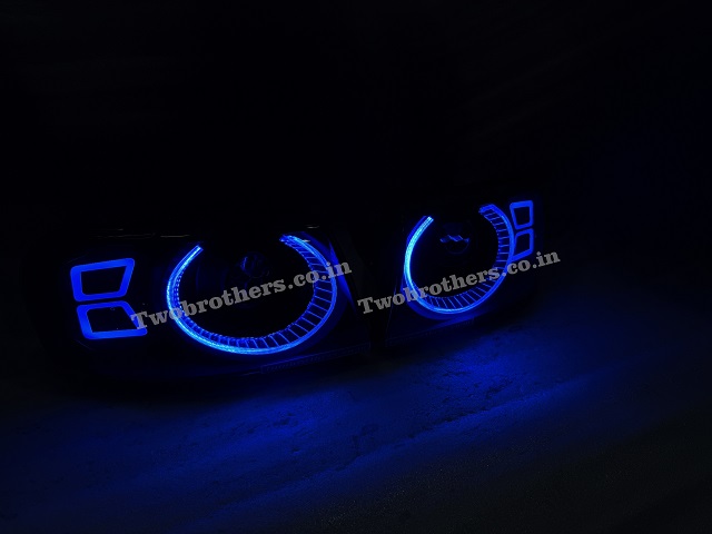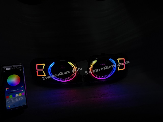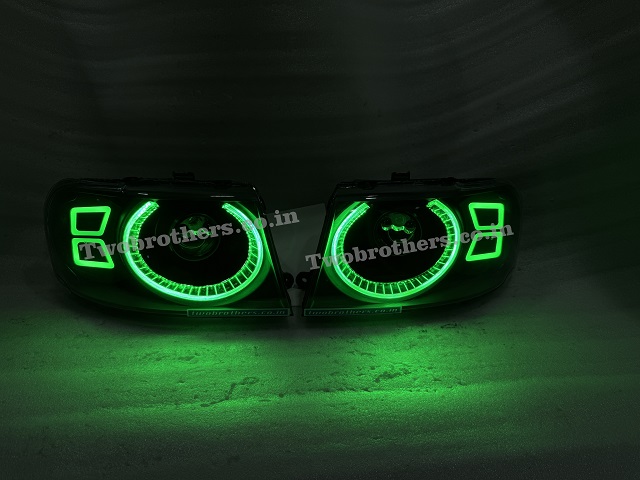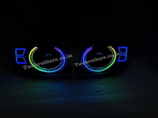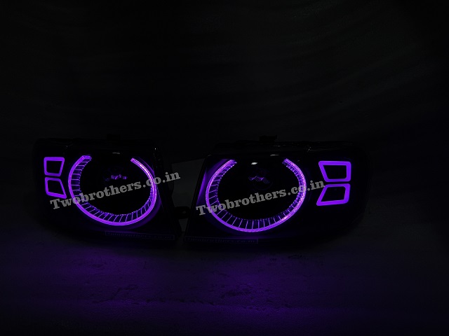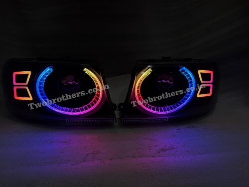 Tata Safari Dicor Defender Style Crystal RGB Mobile App Controlled DRL Biled Projector Headlights V2